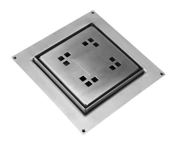 Odpływ kwadratowy o wymiarze 150x150mm. Wykonany ze stali nierdzewnej. W komplecie nóżki montażowe. Wzór: MACINTOSH.