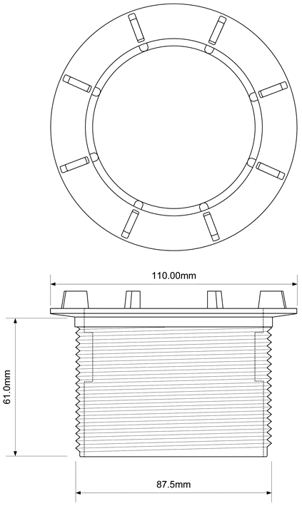 PRZEDŁUŻKA UMOŻLIWIAJĄCA ZAMONTOWANIE SYFONU W BRODZIKACH O GRUBSZYCH ŚCIANKACH, WYSOKOŚC 61 mm