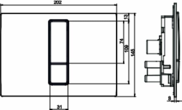 - Przycisk jest przeznaczony do spłuczek z małym otworem rewizyjnym, co pozwala na łatwy montaż i estetyczne wykończenie.