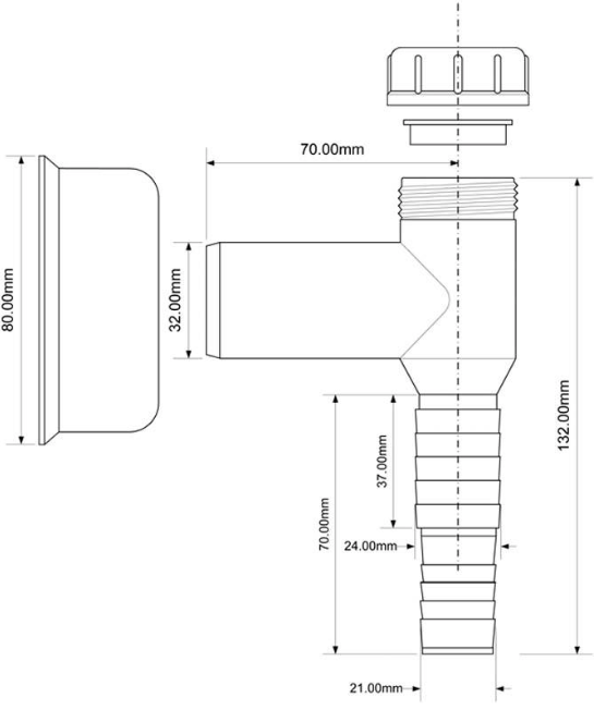 Przyłącze do pralki lub zmywarki z zaworkiem. Odejście 32mm.