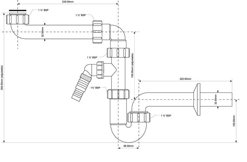 SYFON UMYWALKOWY RUROWY Z ODEJŚCIEM HC4PF-32SPSW